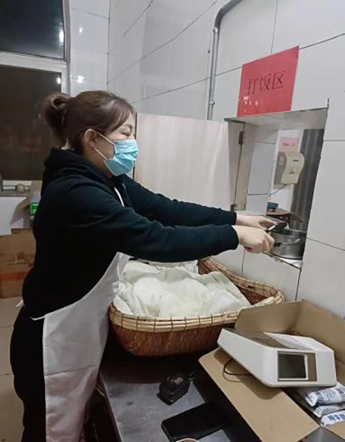 以前后勤保障部每天只準(zhǔn)備兩頓飯,而且夜班吃飯的人不算多,可現(xiàn)在500多人封控在單位,一天要為這些人準(zhǔn)備三頓飯,工作量增加了兩倍多。初文一邊切著菜,一邊笑著說(shuō):“廚師大哥們和幫廚大姐們起早貪黑,咬牙堅(jiān)持工作,我們不僅要讓大家吃飽還要吃好。”