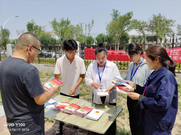 活動(dòng)期間,公司在食堂電視上循環(huán)播放安全主題宣傳教育片、生命通道科普片;二、三分廠廠區(qū)顯要位置懸掛起印有“人人講安全,個(gè)個(gè)會(huì)應(yīng)急——暢通生命通道”的宣傳條幅,營造濃厚的安全氛圍;開展安全生產(chǎn)專題培訓(xùn),集中觀看典型安全生產(chǎn)事故教育警示片,以案為鑒,提升安全意識(shí),并現(xiàn)場(chǎng)閉卷考試;安監(jiān)部和人資部在食堂門口設(shè)立宣傳講解臺(tái),抓住員工就餐的時(shí)機(jī)為其發(fā)放安全生產(chǎn)手冊(cè)、安全生產(chǎn)法律法規(guī)、工會(huì)維權(quán)60問等,耐心細(xì)致地講解安全生產(chǎn)理念和行為規(guī)范,宣傳安全生產(chǎn)政策法規(guī)、安全科普常識(shí)、職業(yè)健康知識(shí)、應(yīng)急處置等,現(xiàn)場(chǎng)回答員工們關(guān)心的問題。
