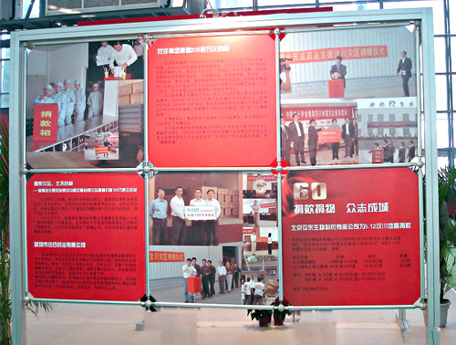 在此次全國藥品交易會(huì)上,組委會(huì)舉辦了60屆專題回顧活動(dòng)。在“眾志成城,抗震救災(zāi)——用我們的愛心給你們力量”大型圖片展,對(duì)全國醫(yī)藥企業(yè),在四川汶川地震時(shí)的奉獻(xiàn)愛心活動(dòng)進(jìn)行了報(bào)導(dǎo),并刊登了我公司王振剛總經(jīng)理以及我公司員工捐款活動(dòng)的大幅照片,四川醫(yī)藥工業(yè)協(xié)會(huì)向支持抗震救災(zāi)的藥界同仁,表示衷心感謝和致敬。全國藥品交易會(huì)組委會(huì)表示,為了支持災(zāi)區(qū)重建,全國藥品交易會(huì)將在四川連續(xù)舉辦三次。