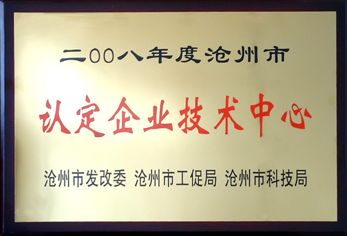 我公司被滄州市發(fā)改委、滄州市工促局、滄州市科技局聯(lián)合認定為2008年度企業(yè)技術中心。近日,獎牌下發(fā)到公司。這是繼我公司被評為“河北省高新技術企業(yè)”、“滄州市高新技術先導企業(yè)”之后,政府部門再次對我公司多年來一直致力于新技術研發(fā)和投入的肯定。這一稱號的取得,也會為企業(yè)帶來一定的政策支持。