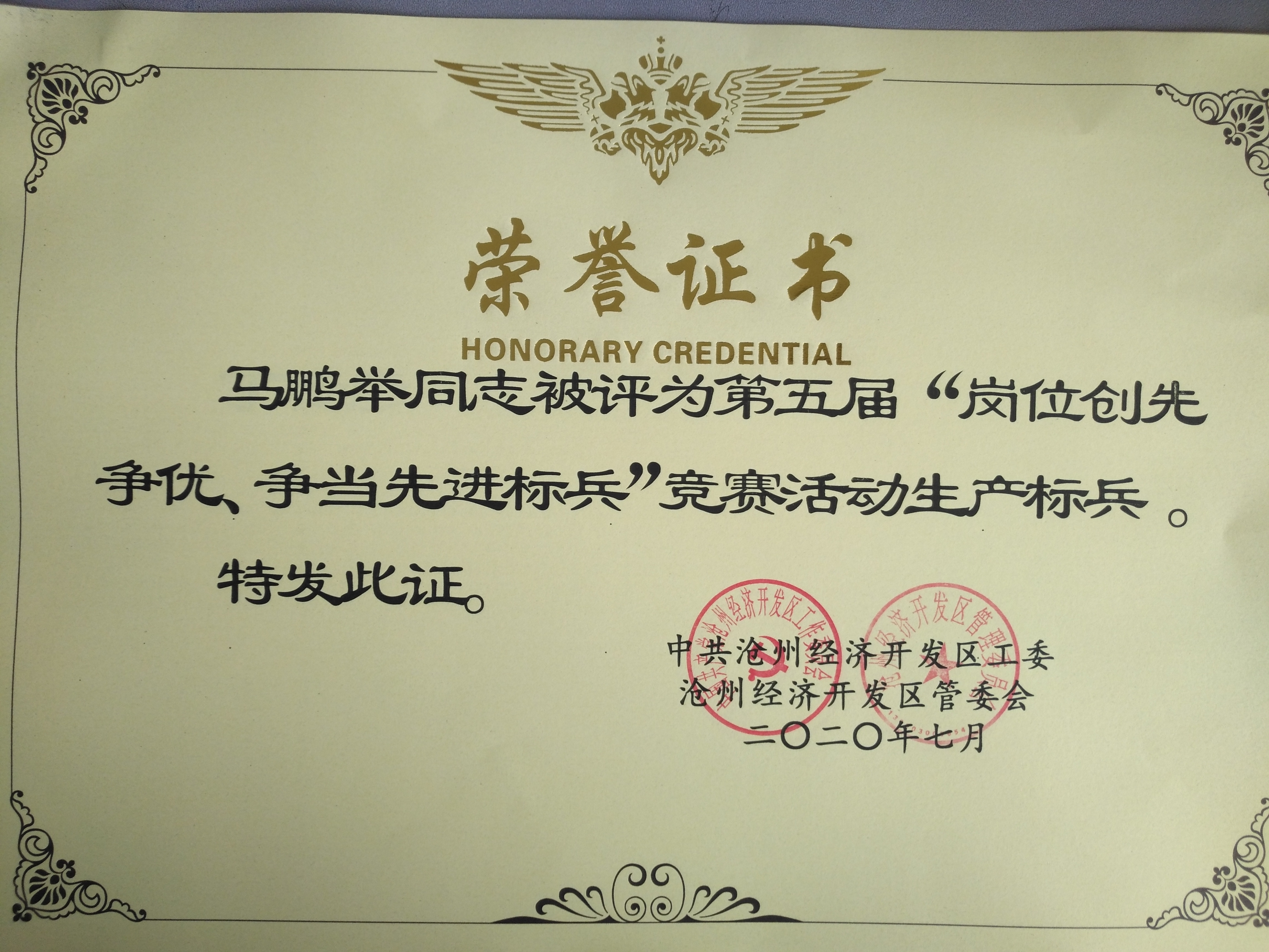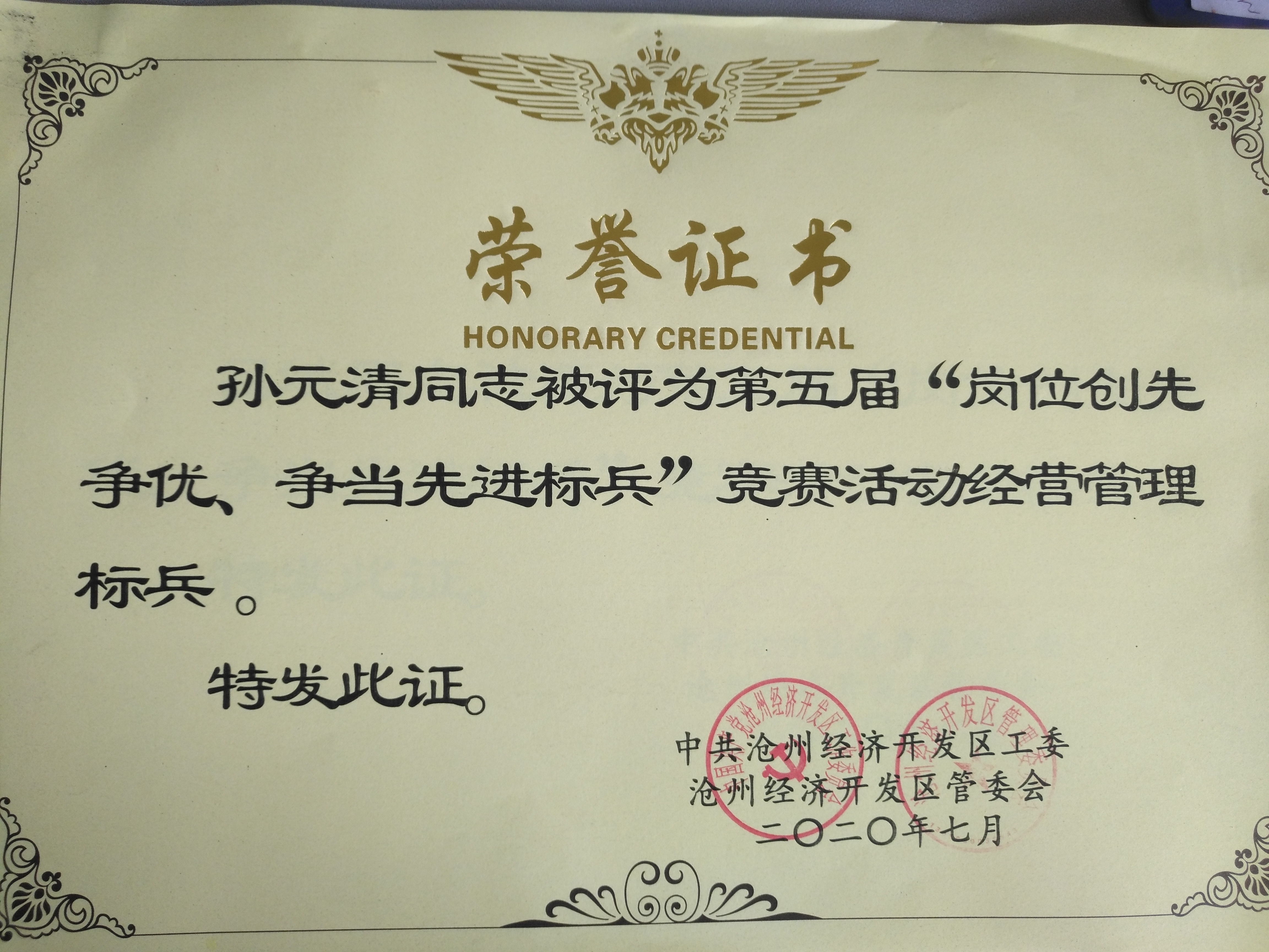 近日,滄州開(kāi)發(fā)區(qū)企業(yè)委員會(huì)開(kāi)展第五屆“崗位創(chuàng)先爭(zhēng)優(yōu)、爭(zhēng)當(dāng)先進(jìn)標(biāo)兵”競(jìng)賽活動(dòng),公司總經(jīng)理孫元清被授予經(jīng)營(yíng)管理標(biāo)兵、綜合部部長(zhǎng)呂斌被授予安全標(biāo)兵榮譽(yù)稱號(hào)、設(shè)備部部長(zhǎng)劉植梅被授予技術(shù)創(chuàng)新標(biāo)兵榮譽(yù)稱號(hào)、原料藥車間馬鵬舉、輸液二車間丁傳彥被授予生產(chǎn)標(biāo)兵榮譽(yù)稱號(hào)。此次評(píng)選表彰工作圍繞提高管理水平、保證安全生產(chǎn)、增加經(jīng)濟(jì)效益、促進(jìn)技術(shù)進(jìn)步,以創(chuàng)一流管理、創(chuàng)優(yōu)秀團(tuán)隊(duì)、創(chuàng)最佳效益為目標(biāo),立足崗位創(chuàng)先爭(zhēng)優(yōu),開(kāi)展?fàn)幃?dāng)標(biāo)兵競(jìng)賽,引導(dǎo)全體黨員和全體員工以昂揚(yáng)向上的精神風(fēng)貌、更加出色的工作業(yè)績(jī),體現(xiàn)黨組織戰(zhàn)斗力,展示黨員和先進(jìn)員工風(fēng)采,倡導(dǎo)塑造企業(yè)先進(jìn)文化,帶領(lǐng)廣大群眾為企業(yè)和諧快速發(fā)展多做貢獻(xiàn)。