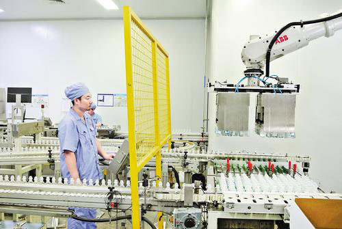 在該公司智能工廠,記者看到,數(shù)十條自動(dòng)化生產(chǎn)線高速運(yùn)轉(zhuǎn),多臺(tái)自動(dòng)引導(dǎo)輸送機(jī)器人穿梭運(yùn)輸廢料,工業(yè)相機(jī)以200幀速度掃描藥瓶,實(shí)時(shí)檢測缺陷。