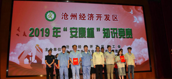 7月16日,由滄州經(jīng)濟(jì)開發(fā)區(qū)總工會(huì)、滄州經(jīng)濟(jì)開發(fā)區(qū)安全生產(chǎn)監(jiān)督管理局主辦,北京現(xiàn)代汽車有限公司滄州分公司協(xié)辦,滄州經(jīng)濟(jì)開發(fā)區(qū)2019年“安康杯”知識競賽在北京現(xiàn)代滄州分公司舉行。我公司綜合部部長呂斌攜道恩藥業(yè)安全環(huán)保部李世杰、綜合部劉立紅參加此次比賽。比賽分為必答題、搶答題、風(fēng)險(xiǎn)題三個(gè)環(huán)節(jié),比賽過程中,我公司三位選手沉著冷靜、對答如流,經(jīng)過激烈的角逐,取得二等獎(jiǎng)的驕人成績。